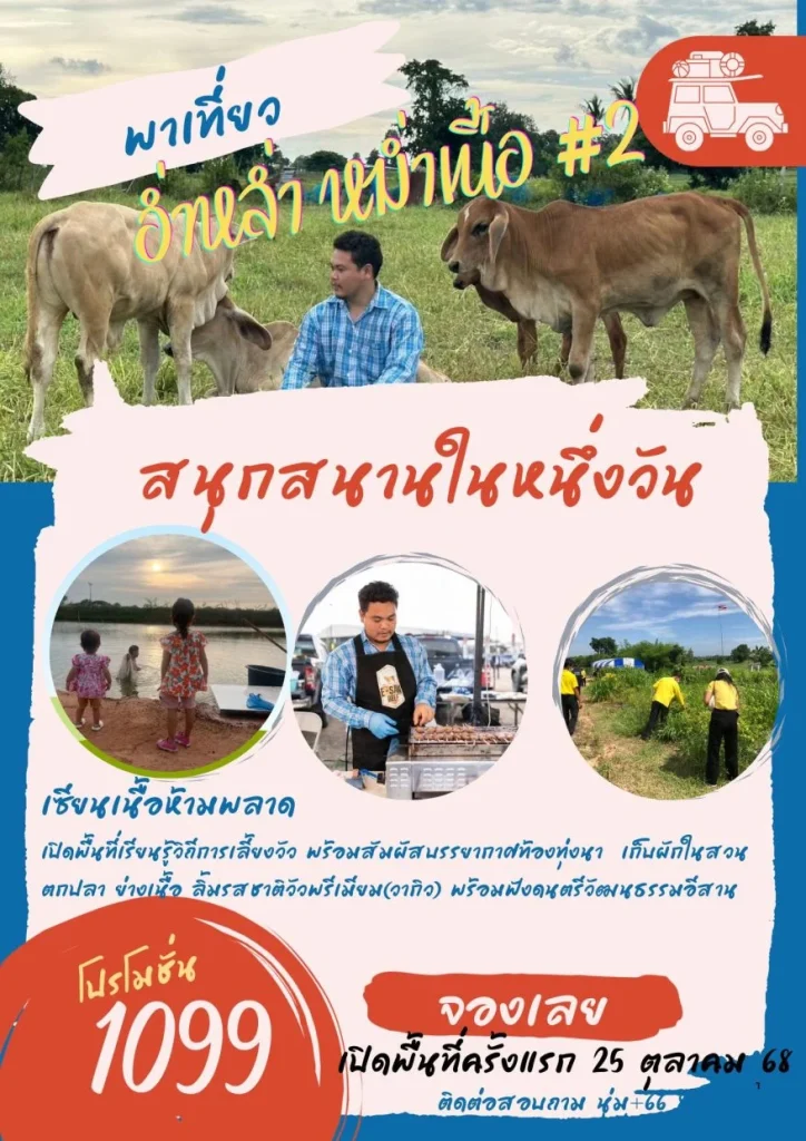 (รวมทุกอย่าง: กิจกรรม อาหารเนื้อพรีเมียม สเต็ก 1 ชิ้น + ดนตรี + วิถีบ้าน ๆ / ไม่รวมค่าเดินทาง-ที่พัก)