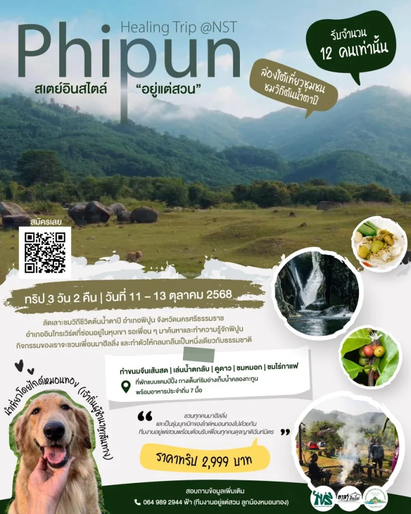 ทำขนมจีนเส้นสด – เล่นน้ำตกลับ – ดูดาว – ชมหมอก– ชมไร่กาแฟ – พักผ่อนหย่อนใจ – ร่วมลุ้นไปกับฤดูของเมืองพิปูน